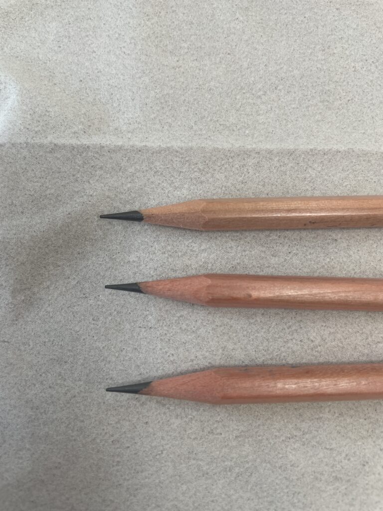 これまで削った鉛筆で、少し斜めかも?と思ったもので、この程度。
